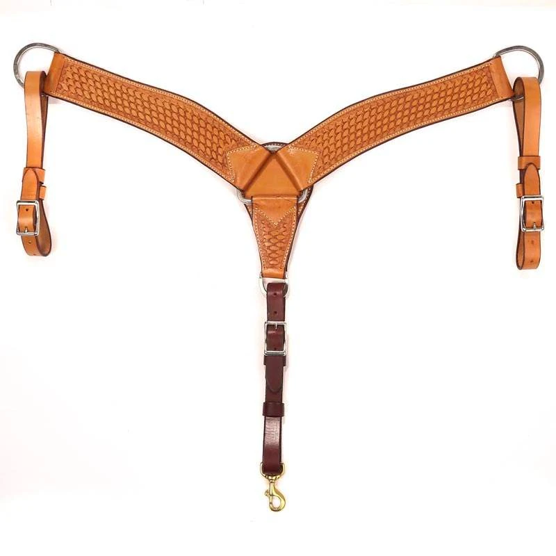 Here is a traditional favorite! It is an understated beauty with medium oil and basket stamping throughout. Equipped with dee rings at the tugs and at the breast.
