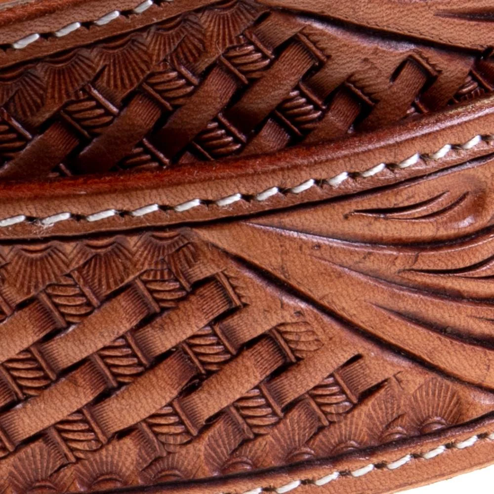Western Fashion Basket And Floral Tooled Belt